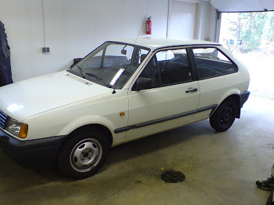 Tänk vad fort det går att handla upp en hel månadslön, det beror bara på vad man köper! Vi har varit och storshoppat idag, vi har nämligen köpt en bil. En VW Polo blev det, alltså en bil modell liten. Nu har vi bara tre bilar som står och väntar på att bli körda till skroten...