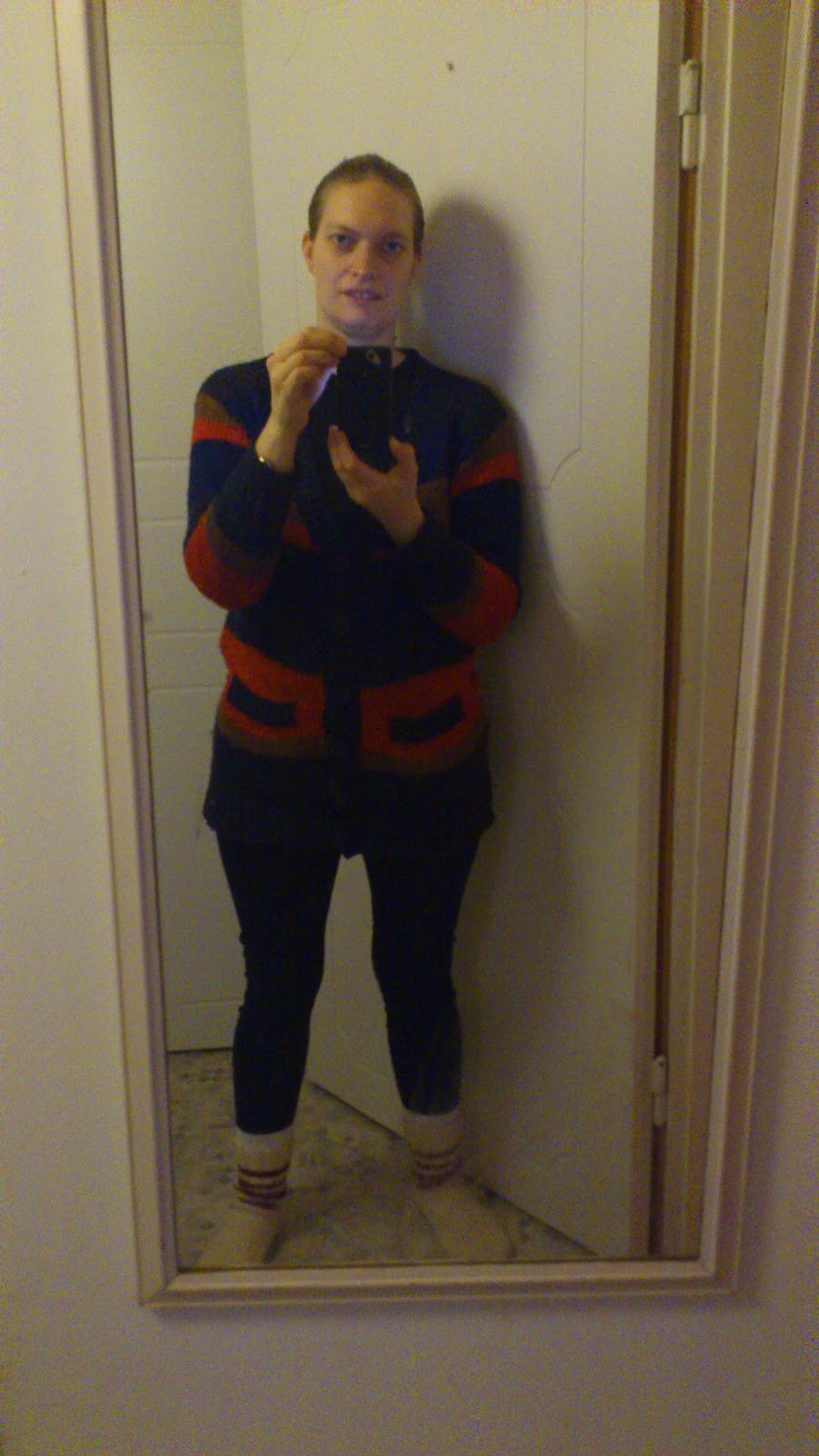 Tyvärr återger min nya mobil inte färger särskilt bra :-( Koftan är inte så här blåaktig i verkligheten.